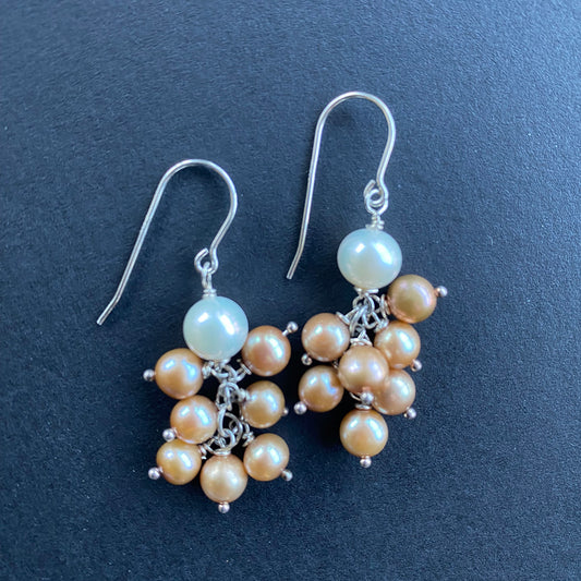 Abstract Large Grey Freshwater Pearls with Black Drop on Sterling Silver Wires