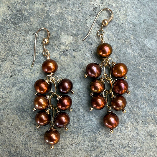 Bronze Pearl Cluster Drop Earrings on 14k GF Wires by Linda Queally