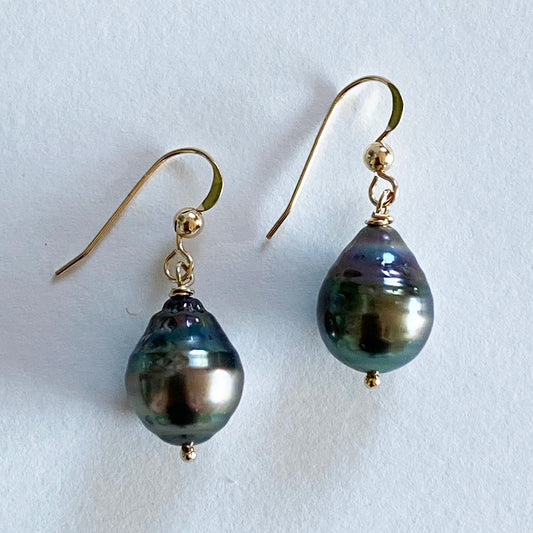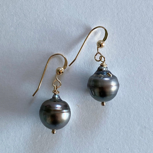 11-14mm Tahitian Pearl Earrings on 14k GF Wires by Linda Queally