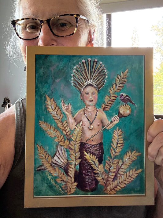 "African Merman King" | 24"x18" | Acrylic and Fine Art Paper on Claybord