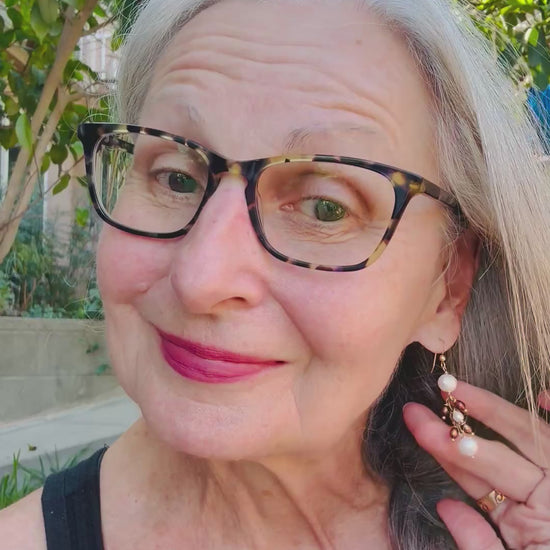 Bronze and White Pearl Cluster Drop Earrings on 14k GF Wires by Linda Queally